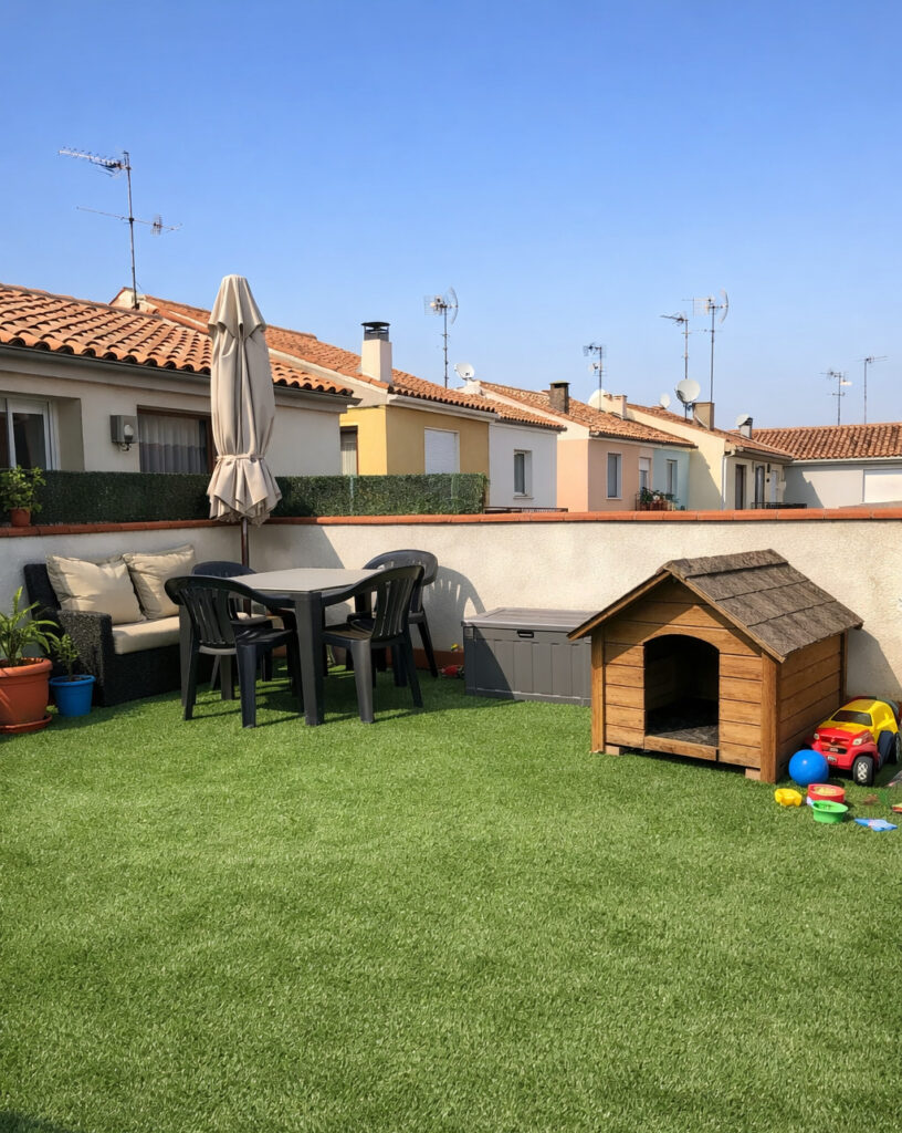 Las superficies mullidas y antideslizantes de nuestro césped artificial proporcionan un entorno seguro para niños y mascotas. Resistente a bacterias y fácil de limpiar, es la opción higiénica perfecta para familias que desean disfrutar de su terraza con total tranquilidad.