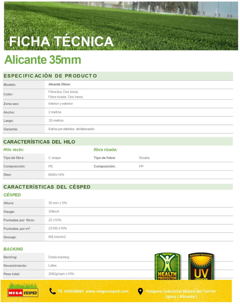 Césped artificial Alicante 35mm desde 8,99€m2 iva incl.